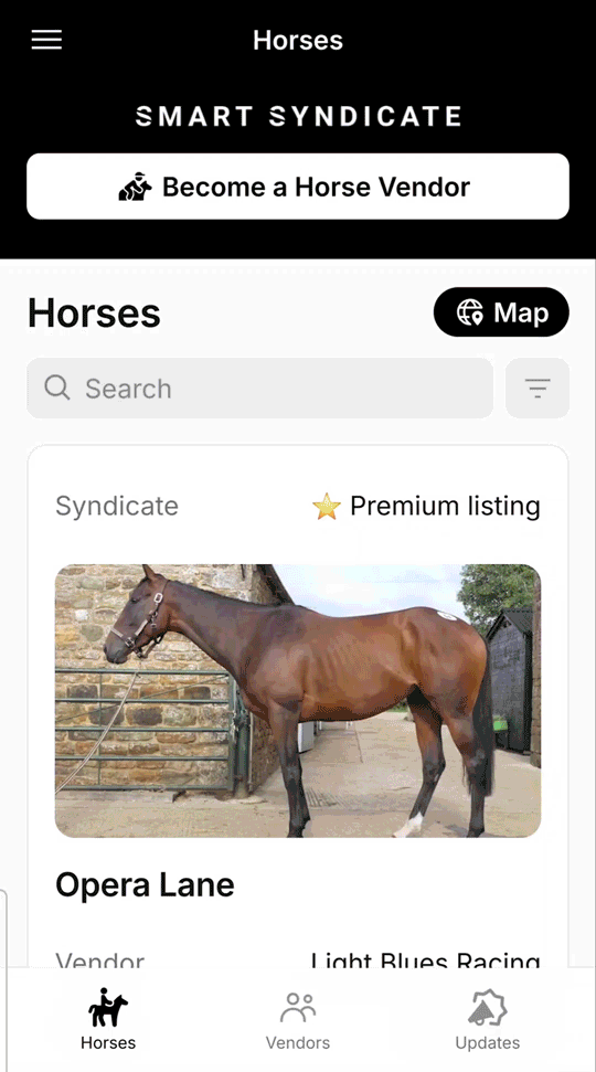 Smart Syndicate is your go-to online platform for shared racehorse ownership. It lists racehorse shares for sale from syndicates, racing clubs, multi-horse partnerships - all together, all in one place. It connects sellers to a network of buyers, more quickly and easily than ever.